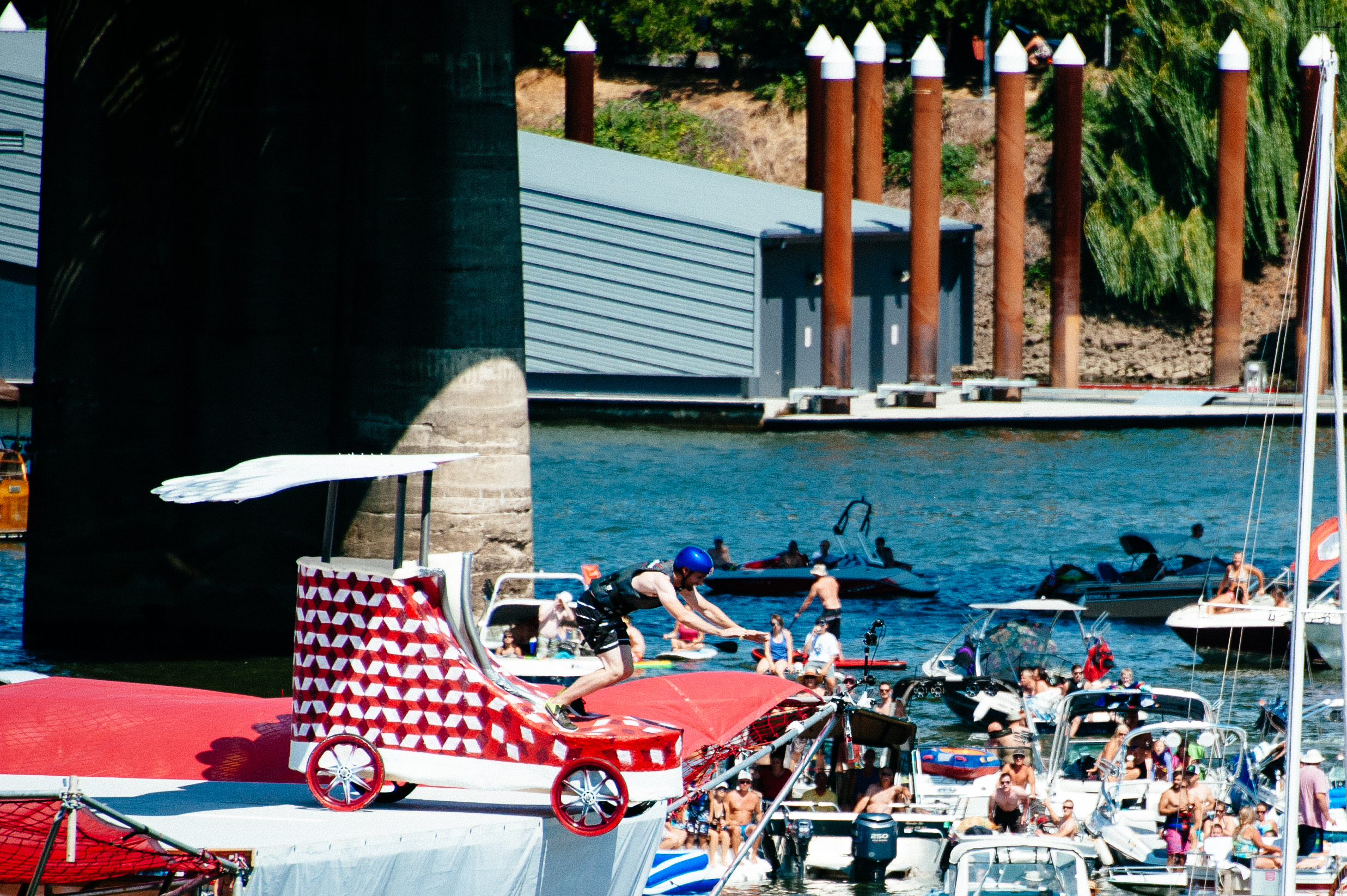 I had the opportunity today to go to Red Bull’s only United States stop for their Flugtag event in 2015. Flugtag means “flying day” in German and Red Bull has been putting on these events around the world since 1991. This was the third time that Red Bull has held a Flugtag in Portland, OR. I read somewhere that the published attendance was 86,000 though I believe there were many more on the bridge and in the river that added to that.